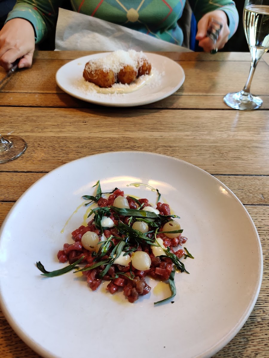 For those who appreciate a well-rounded meal, the Antipasti for 2 is a great choice, offering a variety of textures and flavors that pair perfectly with a glass of wine. The Beef Tartare is another dish that’s sure to impress, bringing together rich flavors in a beautifully presented plate. And for anyone with a taste for traditional British fare, the Sunday Roast Beef is a popular choice, full of hearty flavors and served with all the trimmings.